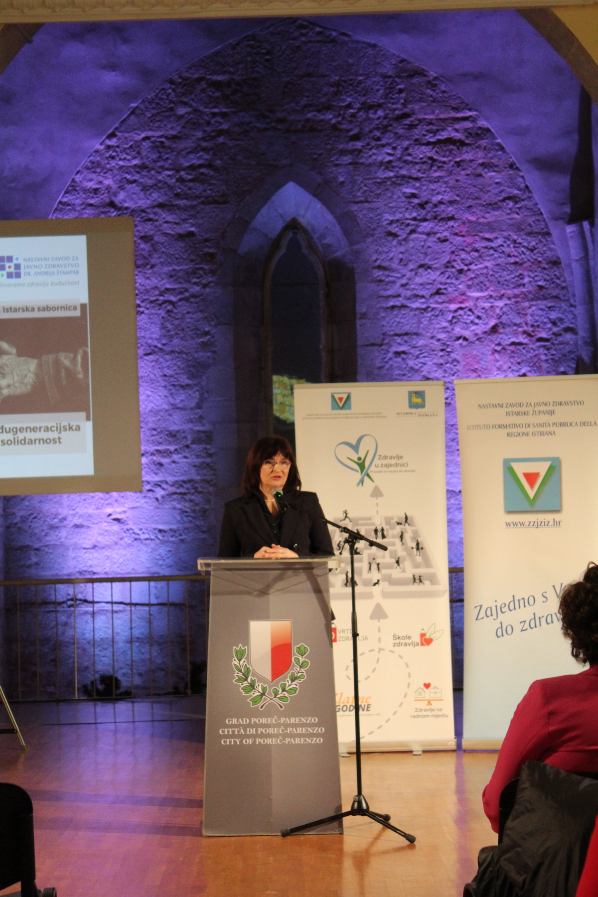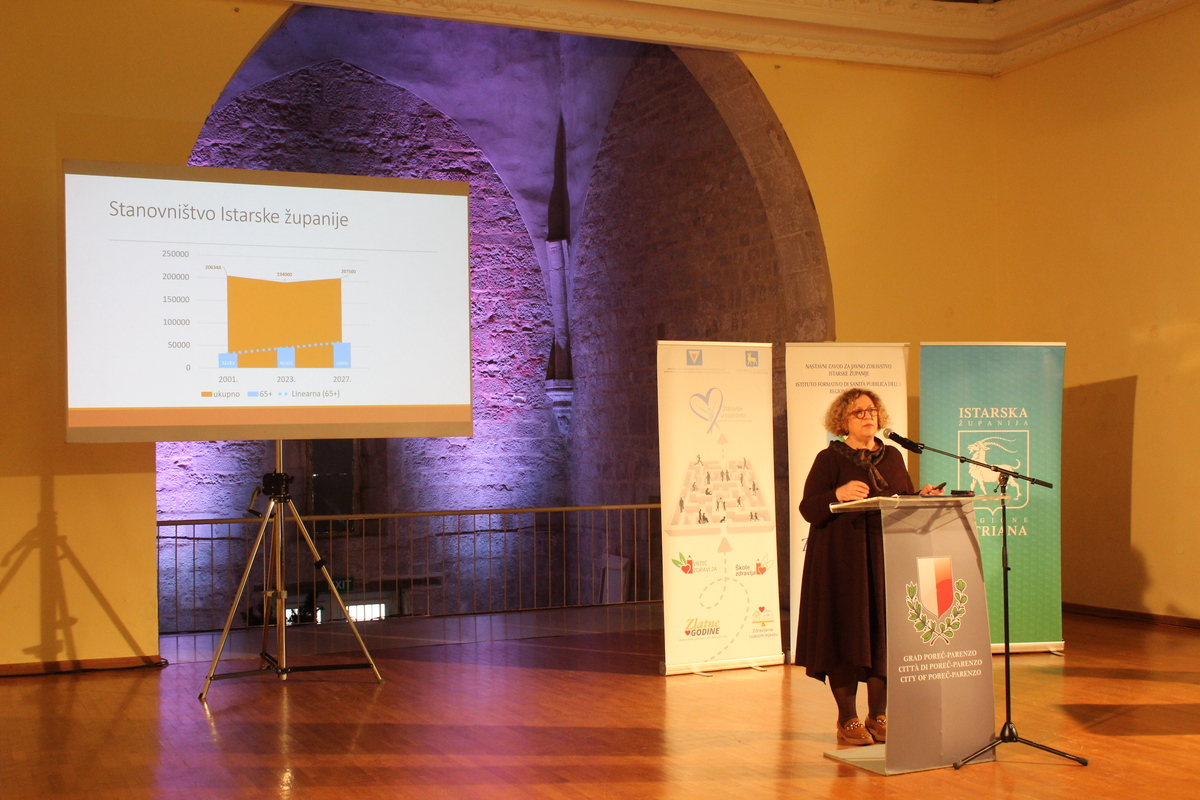 Ovogodišnji skup okupio je brojne stručnjake iz područja javnog zdravstva, socijalne skrbi, obrazovanja i akademske zajednice, s ciljem promicanja kvalitetnog i dostojanstvenog starenja te jačanja međugeneracijskog razumijevanja i suradnje. U uvodnom, pozdravnom dijelu istaknuto je kako zdravo i aktivno starenje ne započinje u starijoj dobi, već se gradi tijekom cijelog života – kroz odnose, znanje, navike i solidarnost među generacijama. Poseban naglasak stavljen je na odgovornost društva u cjelini u stvaranju okruženja koje poštuje dostojanstvo svake osobe. Ravnatelj Nastavnog zavoda za javno zdravstvo Istarske županije, Aleksandar Stojanović naglasio je važnost sustavnog pristupa zdravlju starijih osoba i zahvalio Gradu Poreču - Parenzo, Istarskoj županiji i NZZJZ „Dr.A.Štampar“ na zajedništvu i podršci. Nataša Basanić Čuš, zamjenica gradonačelnika Grada Poreča-Parenzo, je istaknula značaj lokalne zajednice u promicanju međugeneracijske solidarnosti te društvenu koheziju i kontinuirano ulaganje u zajednicu po pitanju starijih osoba. Gordana Antić, zamjenica župana Istarske županije, potvrdila je da Istarska županija priprema Strateški plan za osobe starije životne dobi s ciljem poticanja zdravog i aktivnog starenja te objedinjavanja postojećih dobrih praksi na području svih gradova i općina. Poseban naglasak stavlja se na očuvanje kvalitete života, sprječavanje usamljenosti i prerane institucionalizacije te omogućavanje starijim sugrađanima da što dulje ostanu aktivni i uključeni u zajednicu.
