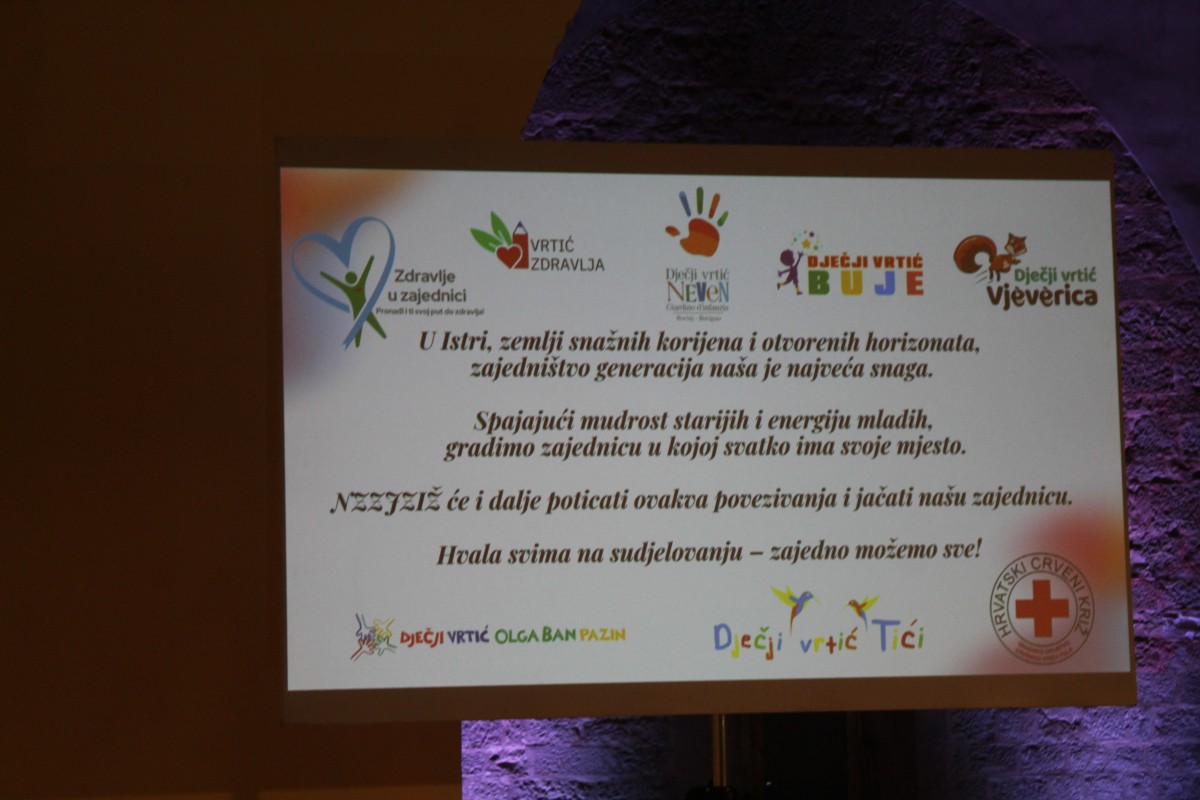 Na skupu su sudjelovali brojni istaknuti stručnjaci i predstavnici relevantnih institucija: prof. prim. dr. sc. Branko Kolarić, ravnatelj Nastavnog zavoda za javno zdravstvo „Dr. Andrija Štampar“, pozdravio je sudionike i naglasio važnost ovog skupa i njegovu jedinstvenost. Voditeljica Službe za javno zdravstvo NZZJZ „ Dr. A,Štampar, Ana Puljak, dr. med. predstavila je vodič o sigurnoj primjeni lijekova, a Sandra Ćakić Kuhar, ravnateljica Doma za starije osobe Poreč, govorila je o suvremenim međugeneracijskim odnosima kao mreži uzajamne povezanosti. Prof. dr. sc. Sanja Smojver Ažić sa Sveučilišta u Rijeci istaknula je važnost cjeloživotnog učenja, dok su predstavnice UO za zdravstvo i socijalnu skrb Istarske županije prikazale razvoj i perspektive sustava skrbi u Istri. Tamara Brussich, voditeljica Odjela za promociju zdravlja u zajednici, NZZJZIŽ, predstavila je projekte usmjerene na unaprjeđenje zdravlja osoba treće životne dobi, a Irena Brajković, psihologinja istog Nastavnog Zavoda, potaknula je raspravu o mitovima i predrasudama vezanim uz starenje. Izv. prof. prim. dr. sc. Nada Tomasović Mrčela iz NZZJZ „Dr. Andrija Štampar“ govorila je o strategijama suzbijanja ageizma, dok su prof. dr. sc. Jasminka Zloković i prof. dr. sc. Anita Zovko s Filozofskog fakulteta Sveučilišta u Rijeci naglasile važnost holističkog i interdisciplinarnog pristupa kvaliteti života starijih osoba. Poseban trenutak skupa bilo je potpisivanje Sporazuma o suradnji između Nastavnog zavoda za javno zdravstvo Istarske županije i Nastavnog zavoda za javno zdravstvo „Dr. Andrija Štampar“, Referentnog centra Ministarstva zdravstva Republike Hrvatske za zaštitu zdravlja starijih osoba. Sporazumom se uspostavlja i dodatno jača stručna i znanstvena suradnja u području javnozdravstvene gerontologije, s ciljem unaprjeđenja zdravlja i kvalitete života starijih osoba. Sudionici su imali priliku razgledati i poster sekciju s primjerima međugeneracijske solidarnosti iz cijele Istre, uključujući projekte domova za starije osobe, dječjih vrtića te međunarodne suradnje kroz Interreg projekt HR SLO „Obalne priče“. Predstavljena je i izložba „Mudrost godina“ u organizaciji Gradskog društva Crvenog križa Pula. Skup je zaključen porukom kako međugeneracijska solidarnost nije samo projekt, već trajna vrijednost istarskog društva – temeljena na uzajamnom poštovanju, učenju i zajedničkoj odgovornosti za budućnost svih generacija.