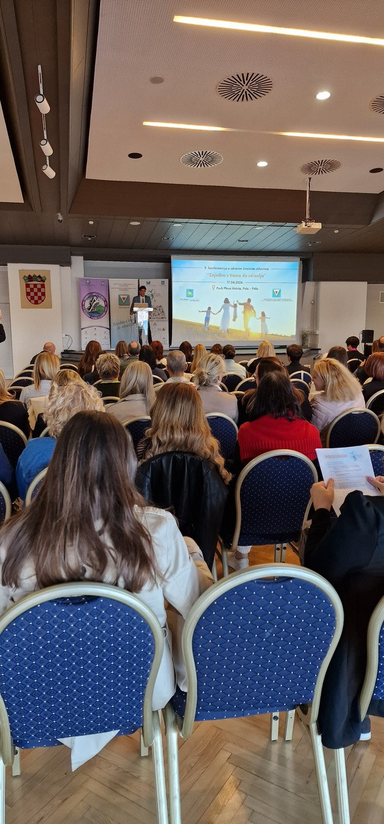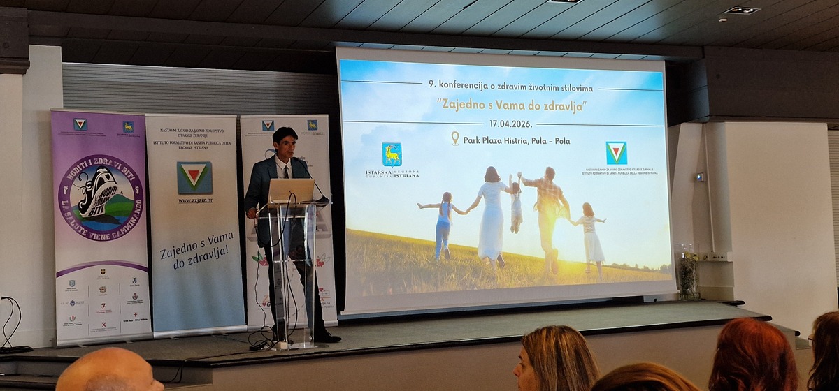 U Puli je 17. travnja 2026. godine, u hotelu Park Plaza Histria, uspješno održana 9. konferencija o zdravim životnim stilovima „Zajedno s Vama do zdravlja – Insieme con voi verso la salute“, u organizaciji Nastavnog zavoda za javno zdravstvo Istarske županije. Konferencija je okupila 120 sudionika – stručnjaka iz područja medicine, javnog zdravstva, odgoja i obrazovanja, sporta, ali i predstavnika institucija i udruga, čime je još jednom potvrđena važnost međusektorske suradnje u očuvanju i unapređenju zdravlja zajednice.